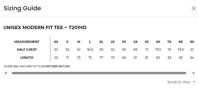 XS S M L XL 2XL 3XL 4XL 5XL 6XL 7XL